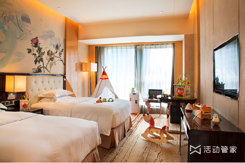 酒店拥有448间豪华客房和套房,均呈现开阔优雅的空间、独特且国际化的时尚品质。客房均在40平方米以上,42寸液晶纯屏彩电、高速宽带网络接入、24小时卫星电视系统等全都配备完善,另设有人体工学办公区等,众多齐全的设施与用品让人感觉宾至如归。入住行政楼层的宾客更可尊享特别的商务服务。行政套房面积最小达85平方米,行政楼层的客人可享受在私人接待台办理快速便捷的入住/退房手续,并可在行政酒廊享用自助早餐、下午茶和傍晚的欢乐时光。